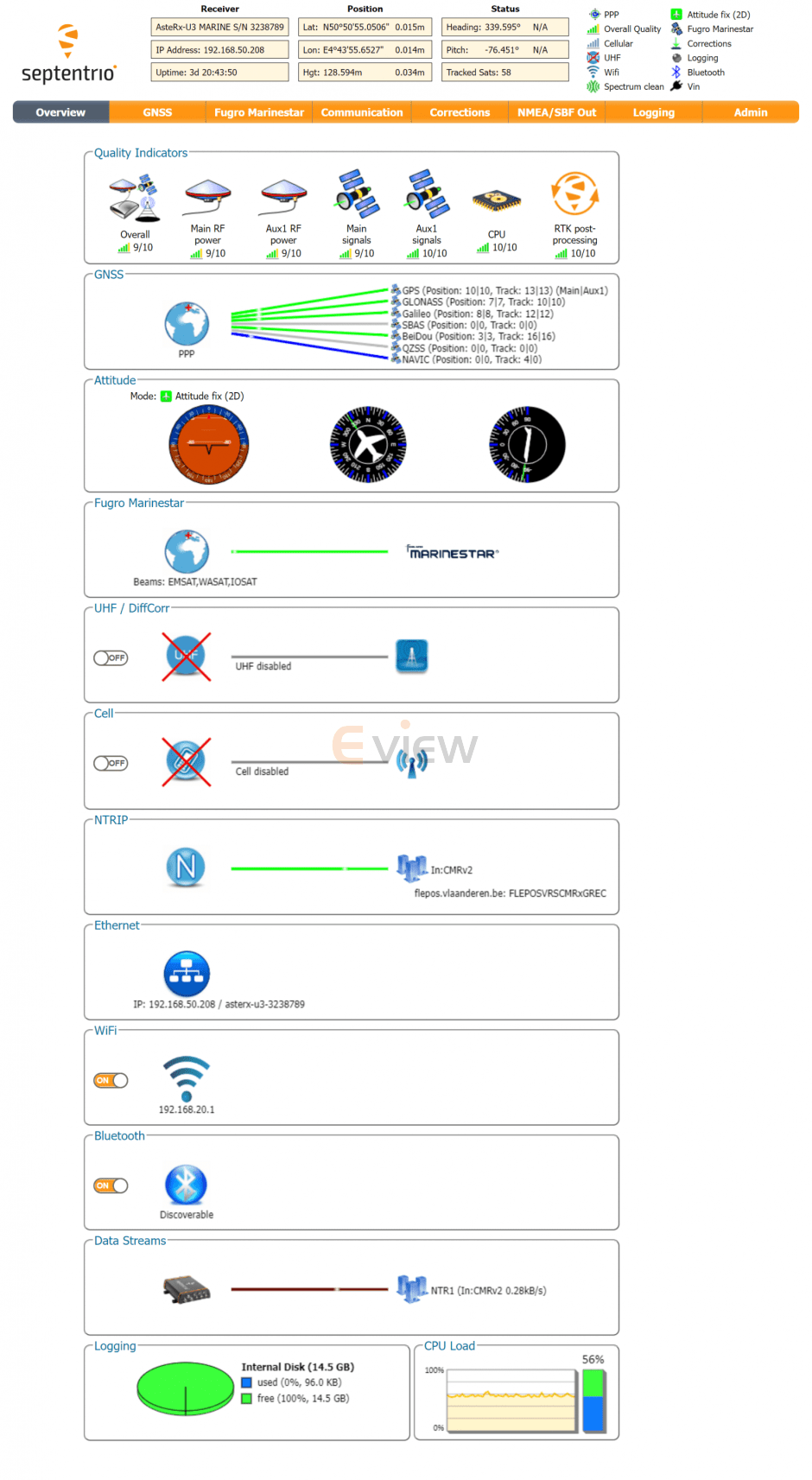 The receiver is configurable from any device from a web browser and there is no longer need for additional equipment such as spectrum analyzer, modem and UHF radio because Septentrio has developed all these features into the AsteRx-U.