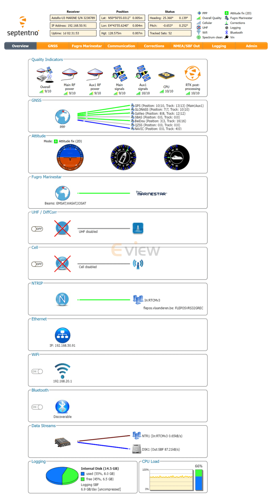 The receiver includes an intuitive web user interface for easy operation and monitoring allowing you to control the receiver from any mobile device or computer. The web interface also uses easy-to-read quality indicators ideal to monitor the receiver operation during the job at hand.